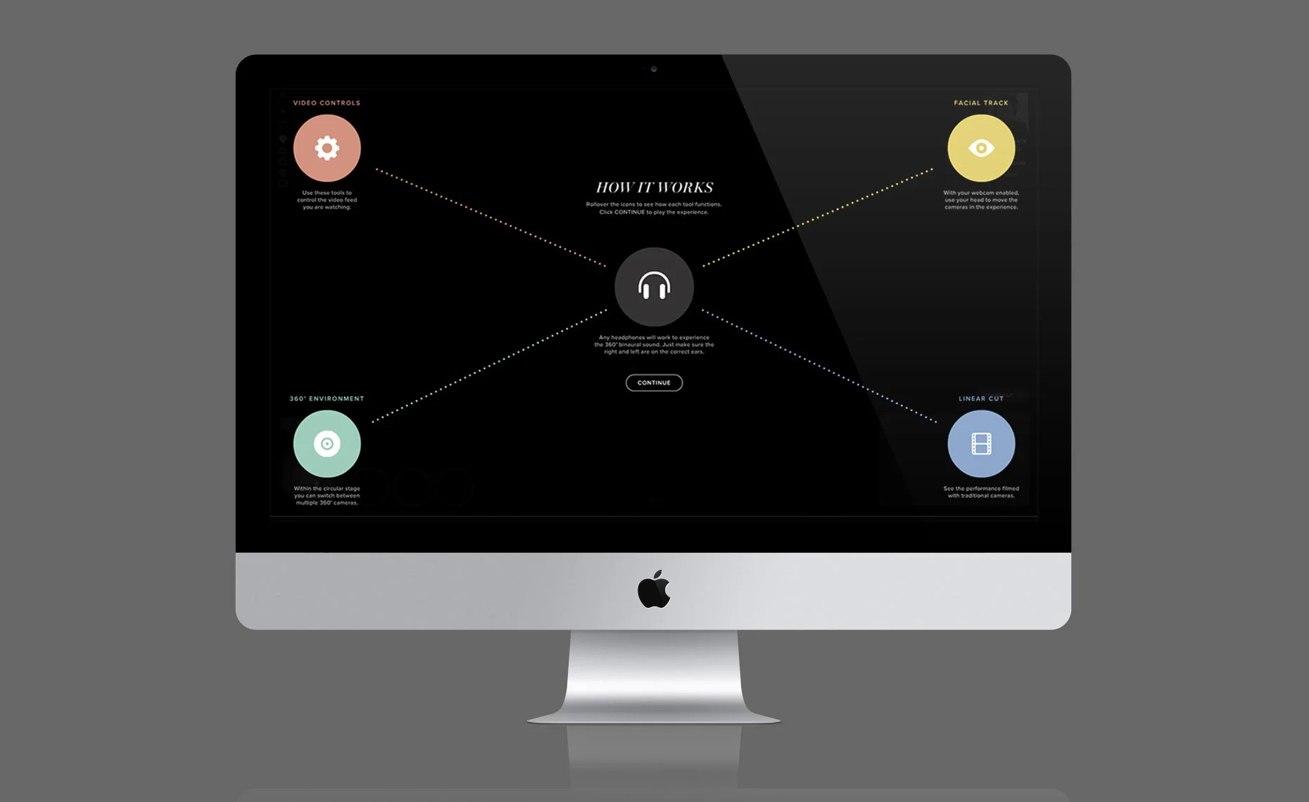 "Hello, Again" is an interactive film directed by Chris Milk, featuring Beck's innovative cover of David Bowie's 'Sound & Vision' played with over 160 musicians. The experience incorporates 360-degree cameras, 360-degree binaural audio, and facial tracking for a first-of-its-kind, immersive audio visual experience that invites users at home to become part of the performance.